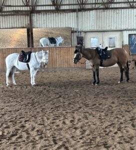 Le code ‘’lie down’’ est aussi utile quand Indy est en cheval de bât. Dans le manège alors que j’étais assise sur Poney si je lui demandais de se coucher et elle répondait bien étant évidemment très à l’aise avec Poney et les autres chevaux.