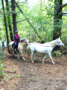 Lindsey Partridge de Harmony Horsemanship en Ontario m’a enseigné de montrer à Indy ‘’ va à droite’’, ‘’ va à gauche’’, ‘’ va tout droit’’ commandes utiles quand on circule à pied avec notre cheval tout comme lors des randonnées.